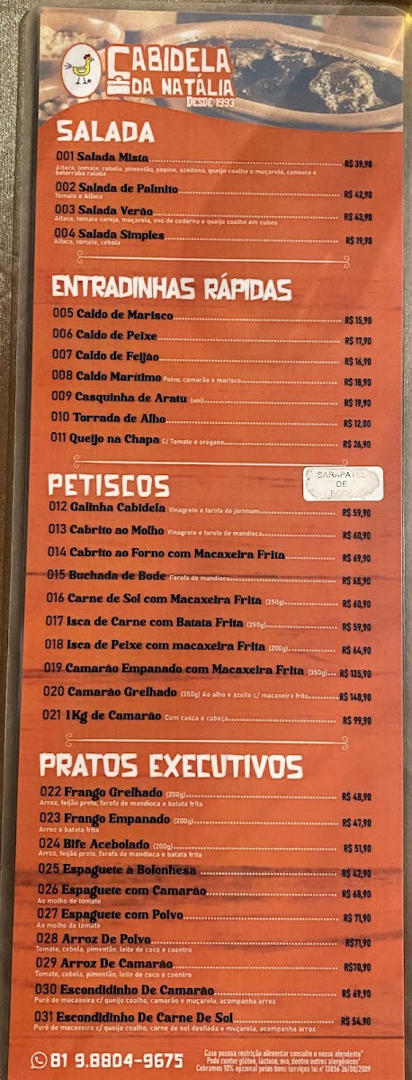 Introducing the menu at Restaurante Cabidela da Natalia, where culinary delights await in the heart of Porto de Galinhas. Located at R. K, 173, this charming eatery has won the hearts of food enthusiasts, as evident by glowing reviews from satisfied diners.